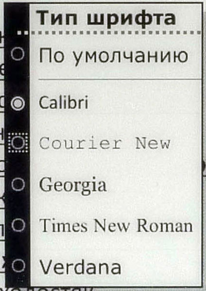 Можно добавлять свои TTF-шрифты: достаточно записать их в папку Fonts, а Bookeen Cybook Gen3 Gold Edition самостоятельно обнаружит и установит их. При этом можно выбрать один из 12 размеров шрифта. Также можно включить выравнивание текста, но работает оно немного криво – между словами часто появляются большие пробелы. Наконец, последняя опция – жирное начертание для всего текста.